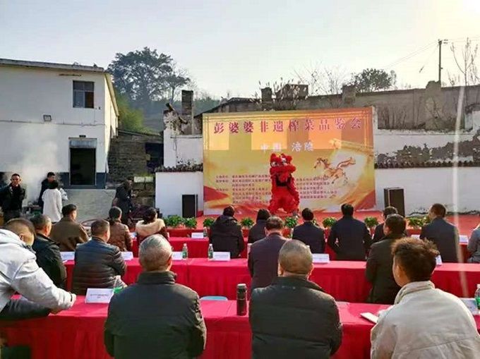 上午10时,威武喜庆的舞狮表演响彻现场,彭婆婆非遗榨菜品鉴会正式拉开帷幕。现场嘉宾齐聚一堂,共同见证这场融合巴渝传统韵味与新时代产业活力的盛会。作为涪陵区非物质文化遗产“风脱水酱香榨菜传统手工制作技艺”的代表性传承品牌,彭婆婆榨菜由第五代传承人彭荣贵执掌,始终恪守百年古法工艺,更以独特的“风脱水”技艺凝练出鲜、香、嫩、脆的极致风味。从青菜头精挑细选到调味封装,每一道工序都凝聚匠人初心,让这份巴渝风味早已跨越山海。本次品鉴会既是对传统榨菜技艺的致敬与传承,更是政企携手整合资源、推动非遗美食走向国际市场的重要实践。